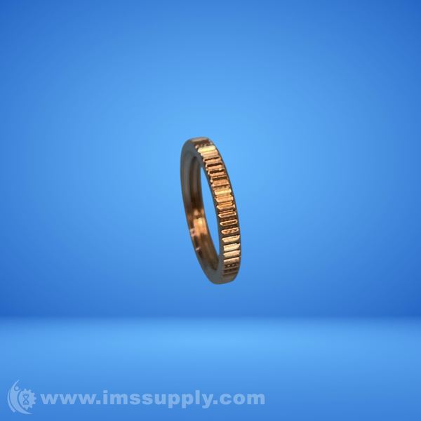 Industrial mechanical component, possibly a seal or bearing part, with ridged outer surface and smooth inner diameter