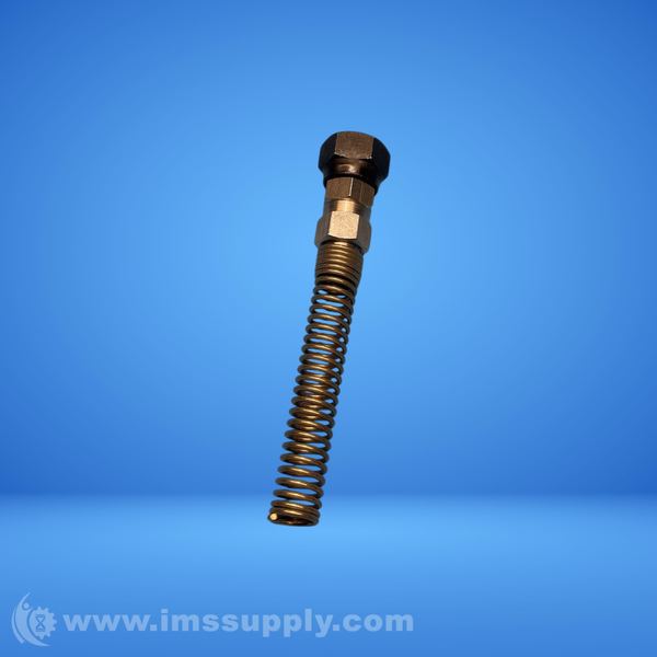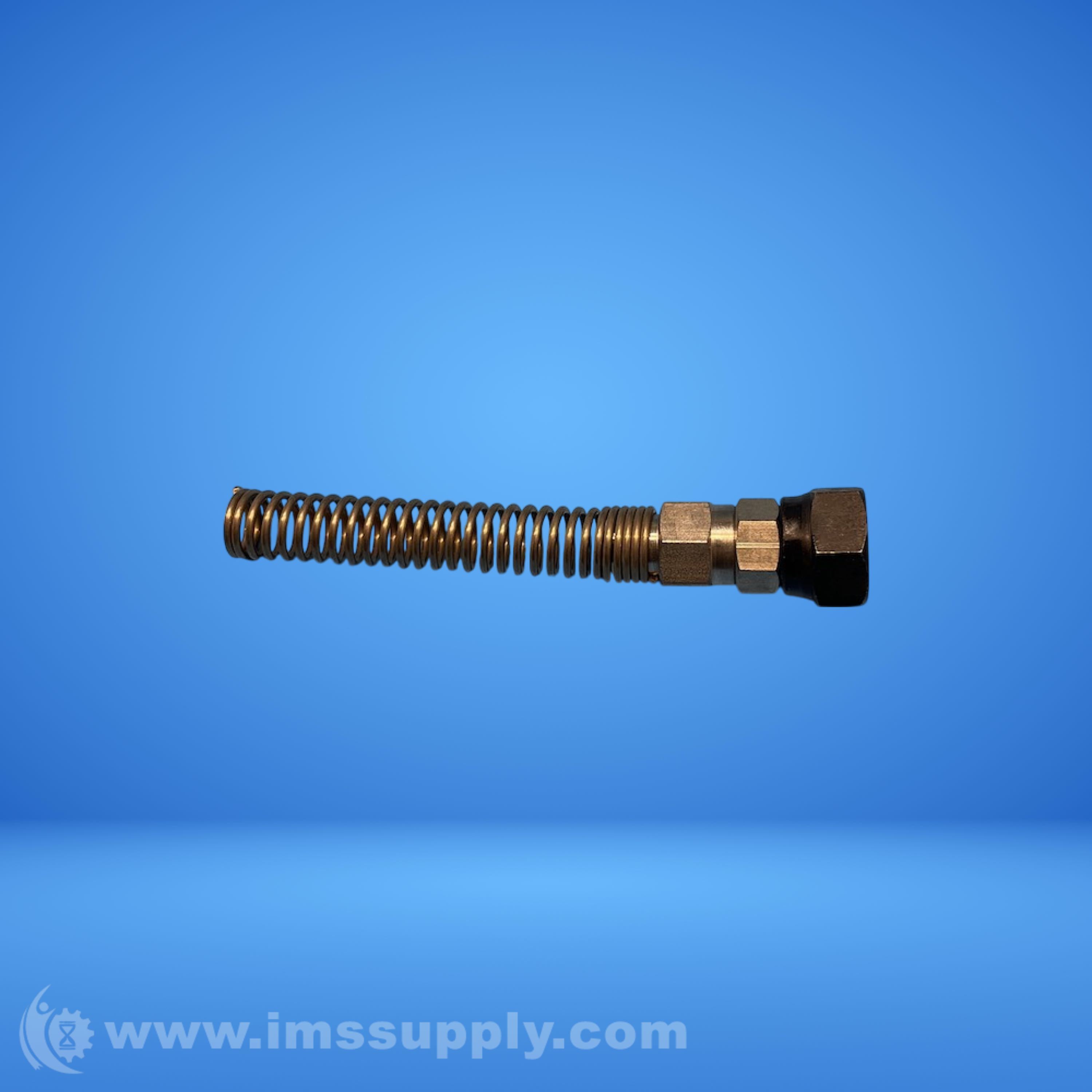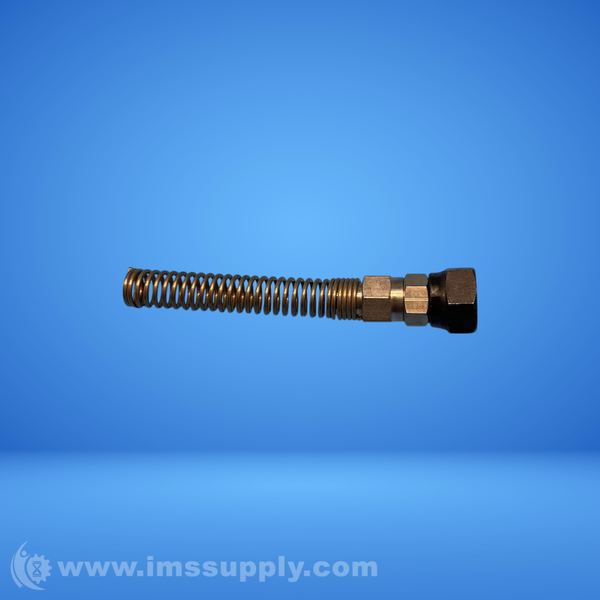 A flexible metal hose assembly with threaded ends and a spring-like construction, likely used for fluid or gas transfer in industrial applications.