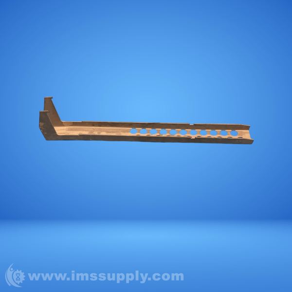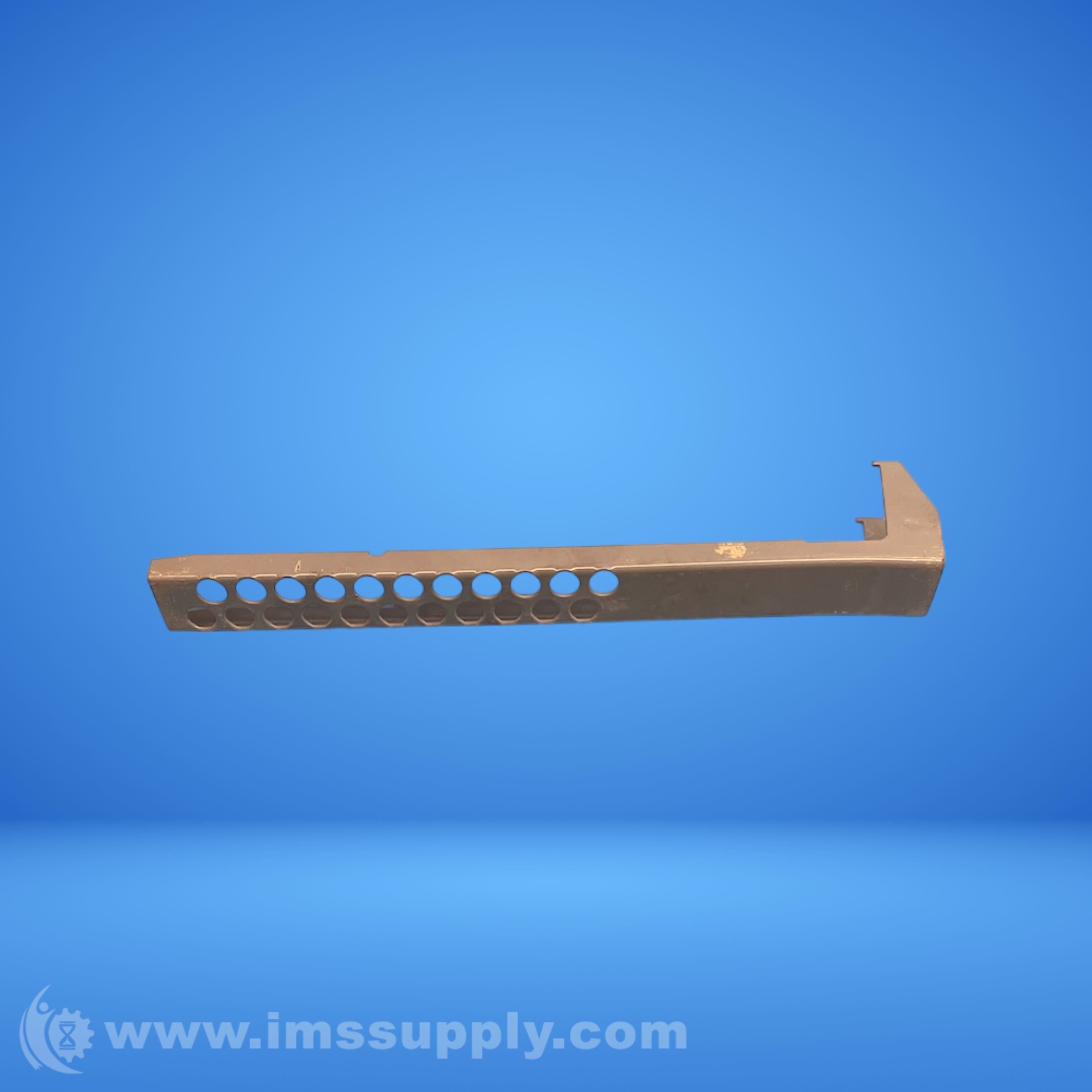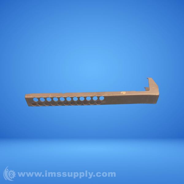 Metal support bracket with multiple holes for mounting or attachment, featuring an L-shaped design at one end.