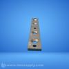 A precision step gauge with multiple labeled holes indicating different measurement references or settings.