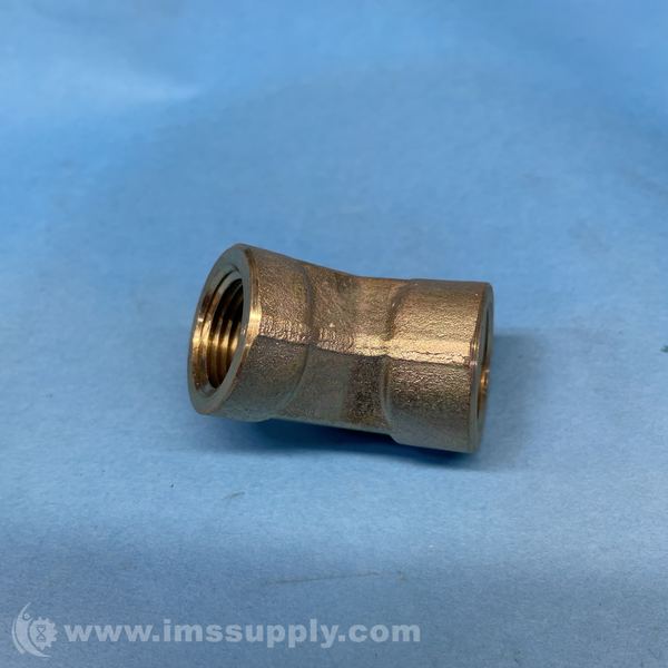 45 degree street elbow fitting with female NPT thread on one end and male NPT thread on the other