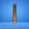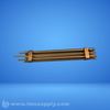 Tubular heating element with finned design for enhanced heat transfer, featuring multiple heating zones and electrical connections at both ends.