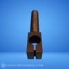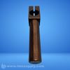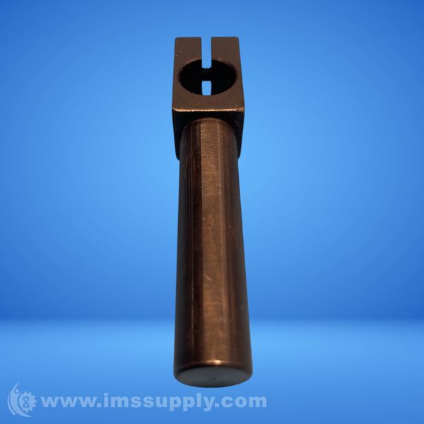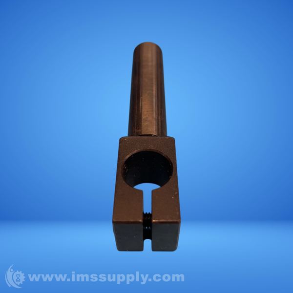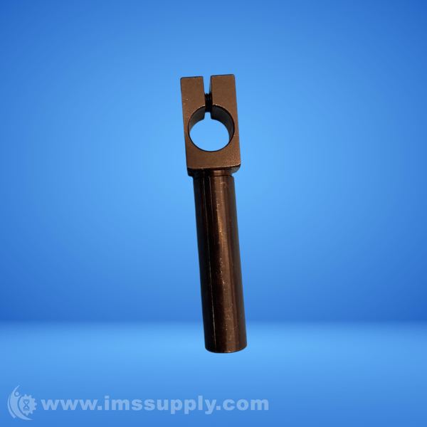 A shaft collar with a cylindrical shaft and a rectangular head featuring a circular hole and slot.