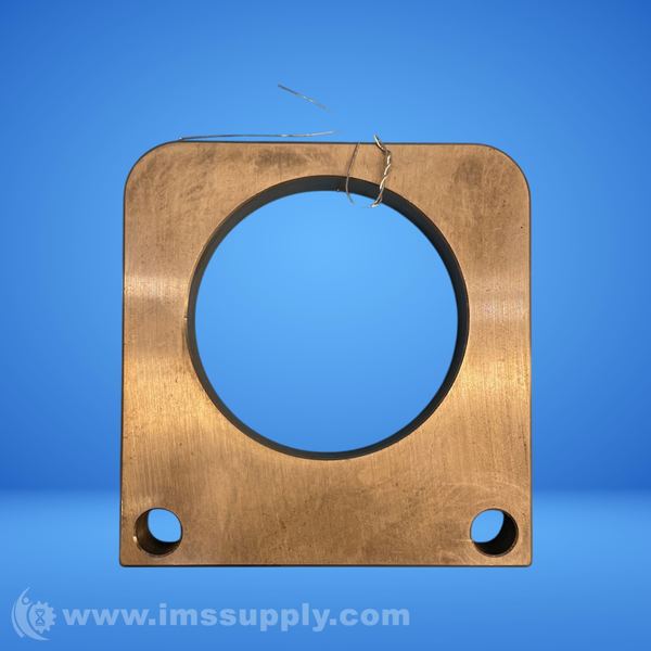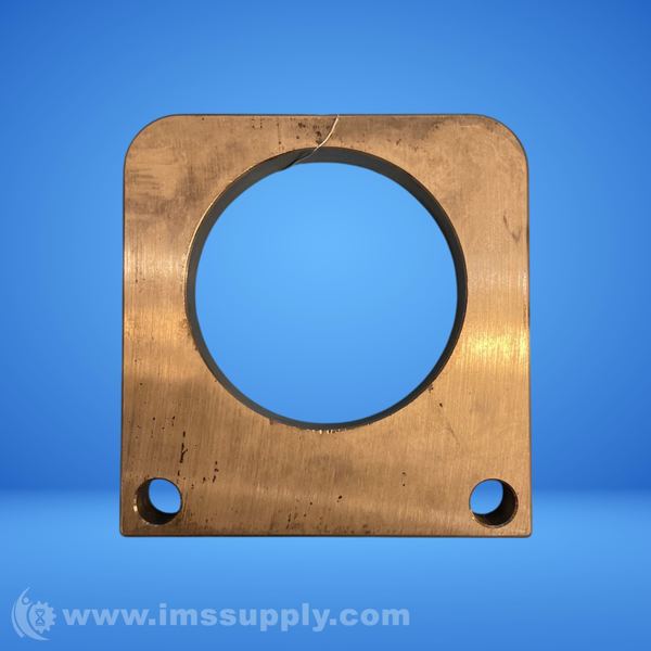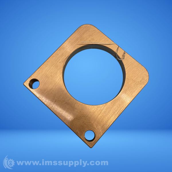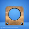 Brass flange with square shape and rounded corners, featuring a central circular opening and two mounting holes.