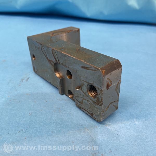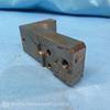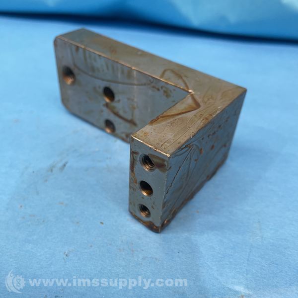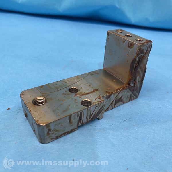 A right angle metal bracket with multiple threaded holes for mounting purposes.