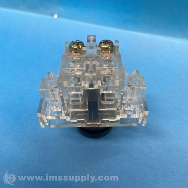 Industrial switch with transparent plastic housing and black actuator