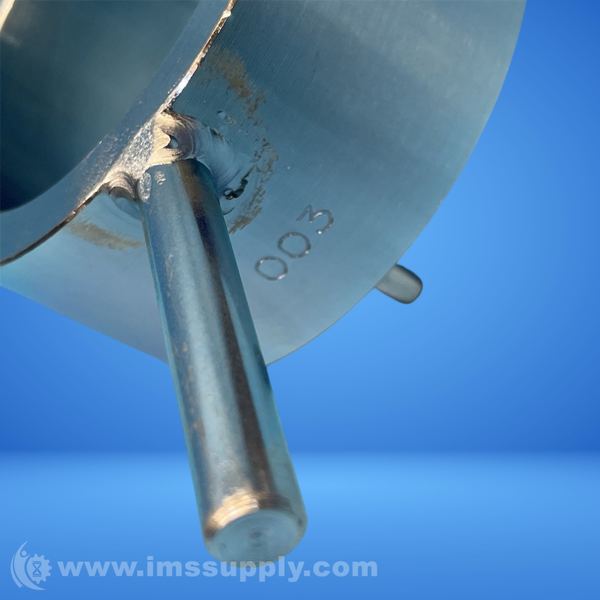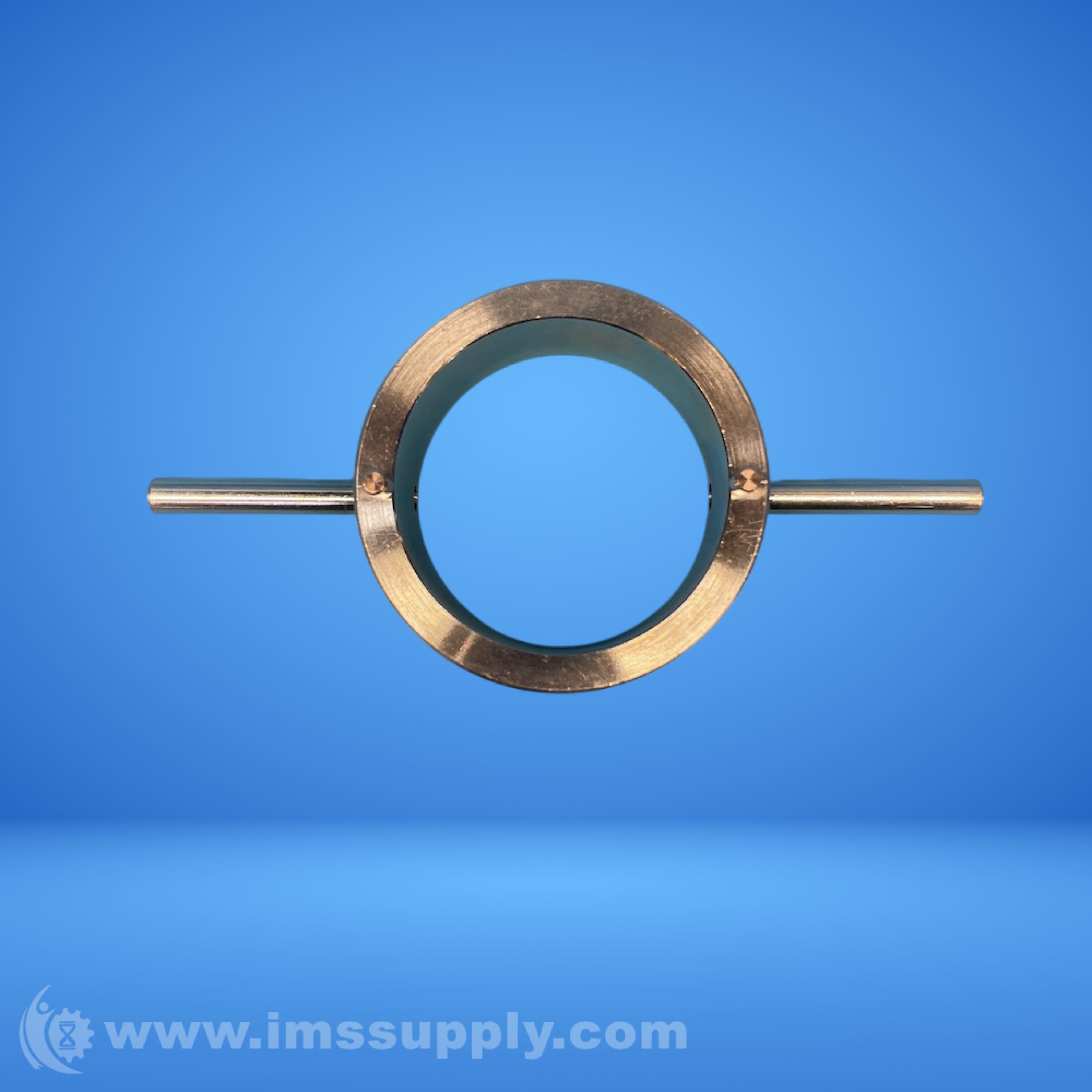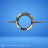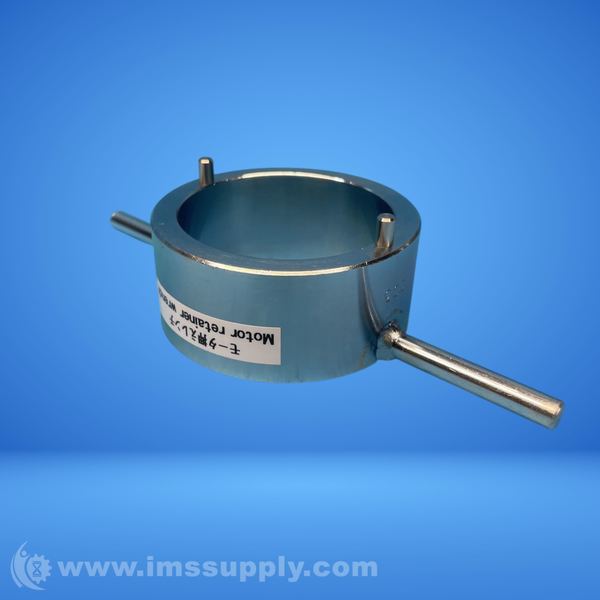 A metal tool designed to secure or release a motor component, featuring a circular body with protruding handles.