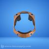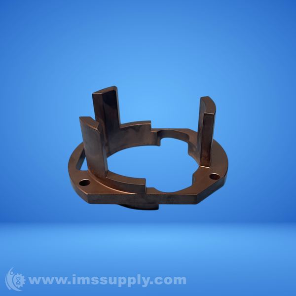 Machined industrial component with circular design, multiple mounting holes, internal cutouts, and protruding sections for mechanical assembly or connection.