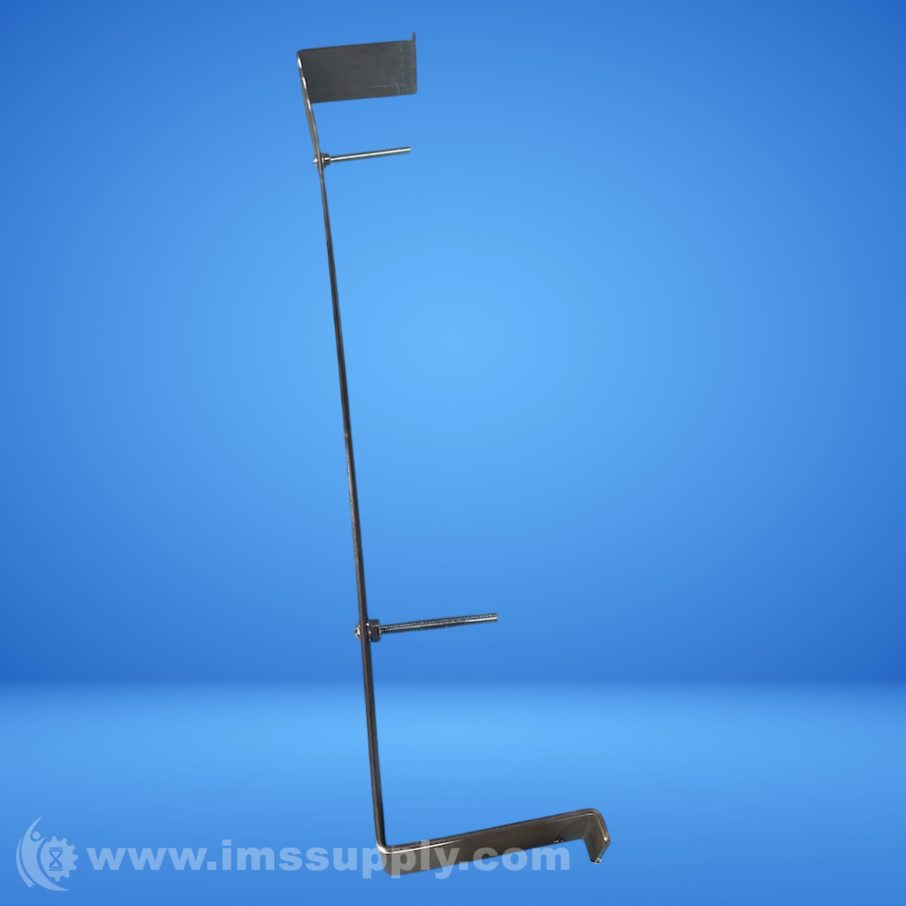A metal bracket designed for industrial use, featuring adjustable components and mounting hardware.