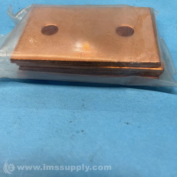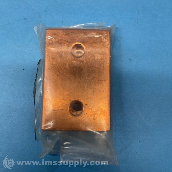 Copper bus bar with two mounting holes, packaged in plastic bag