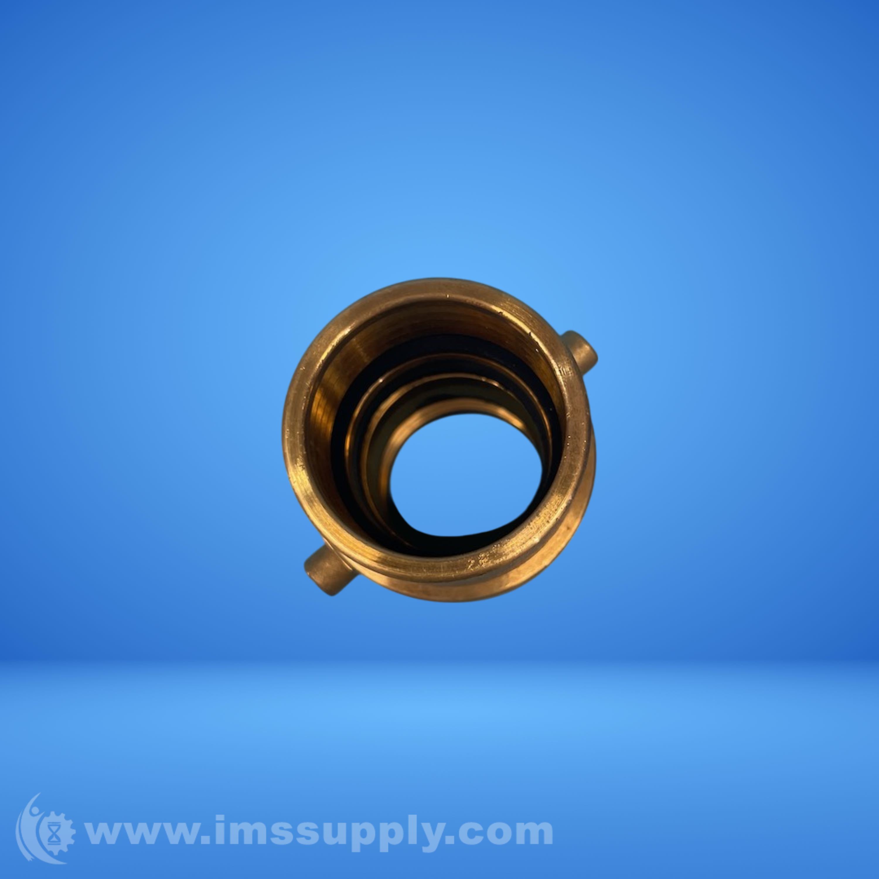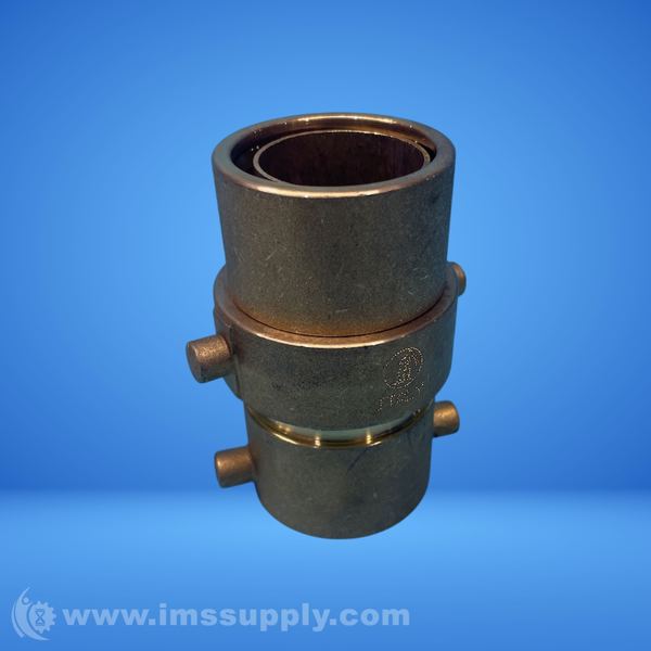 A pipe coupling with three pins on the lower section and a cylindrical design.