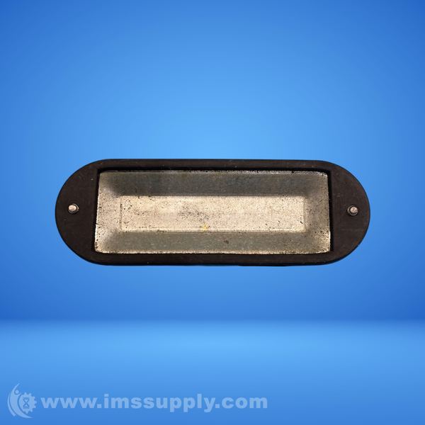 Oval plate handle with two mounting screws, likely used for cabinet or equipment doors