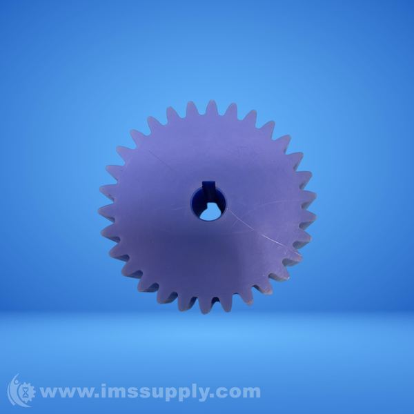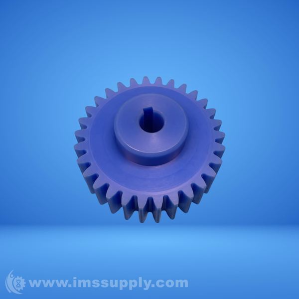 A plastic spur gear with a keyed shaft hole, designed for mechanical power transmission applications.
