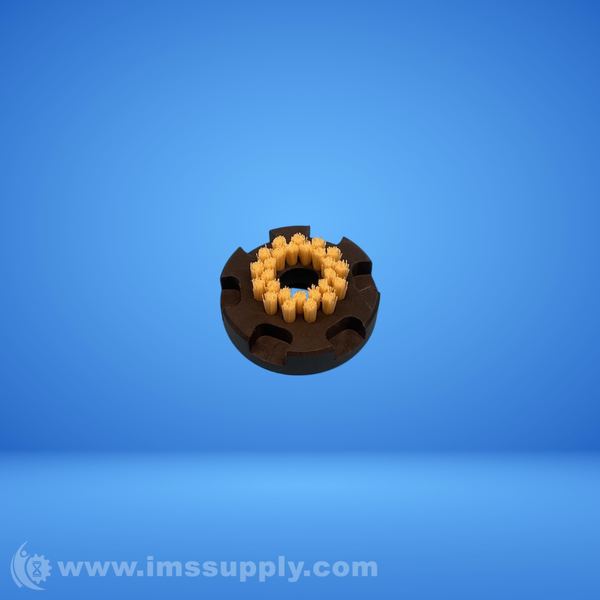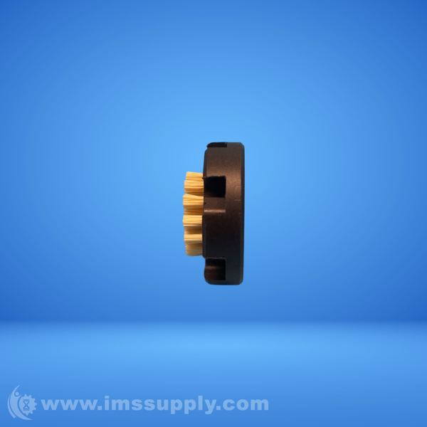 A circular brush block assembly featuring multiple bristle bundles arranged in a ring configuration, mounted on a dark-colored base with notches for mounting or alignment.