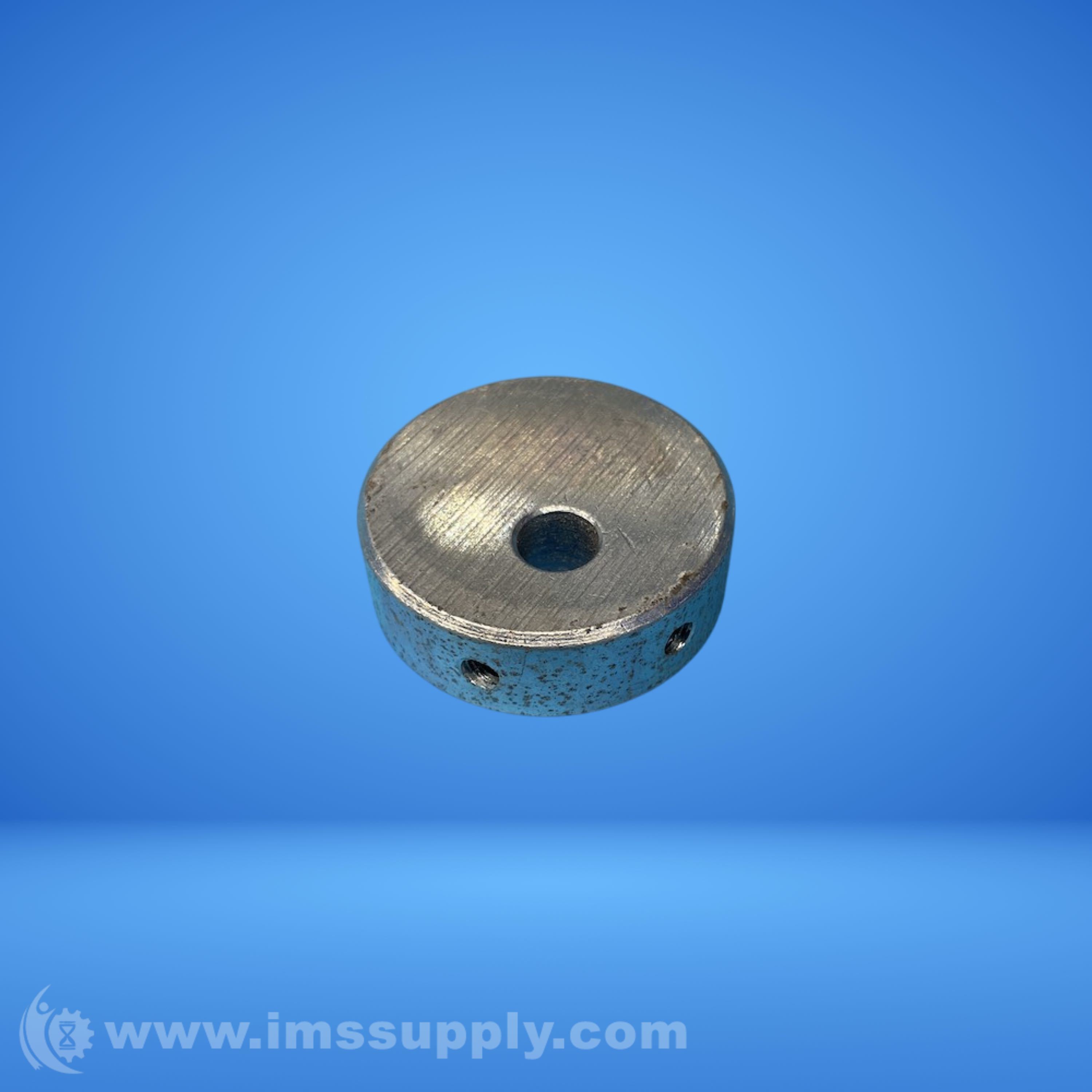 Cylindrical shaft spacer with central hole and mounting holes.