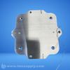 A metal plate with multiple mounting holes and a wired component attached to one side.