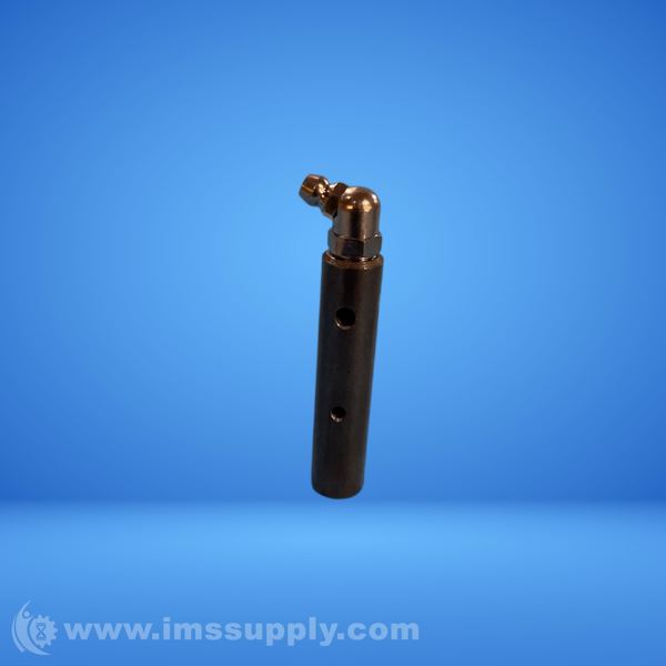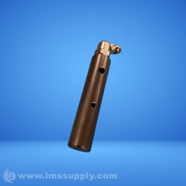 A cylindrical industrial pipe fitting with multiple holes and a bent connector end.