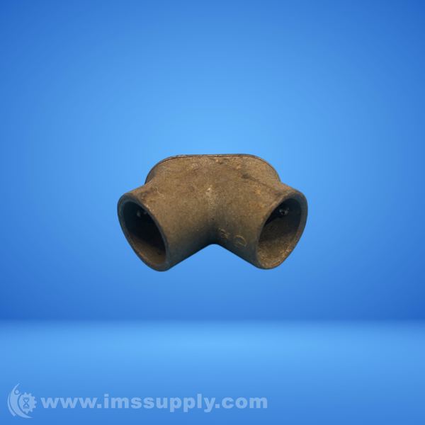 Cast iron pipe fitting used for plumbing or piping applications with a curved design and multiple connection points.