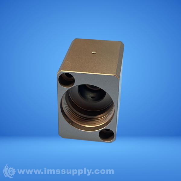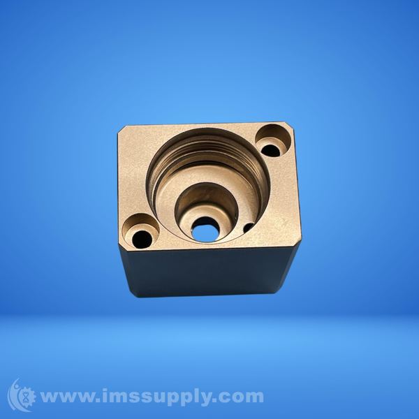 A hydraulic valve block with multiple ports and a complex internal configuration, likely used for directing fluid flow in industrial hydraulic systems.