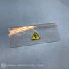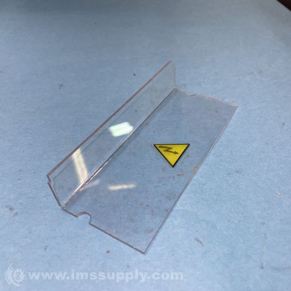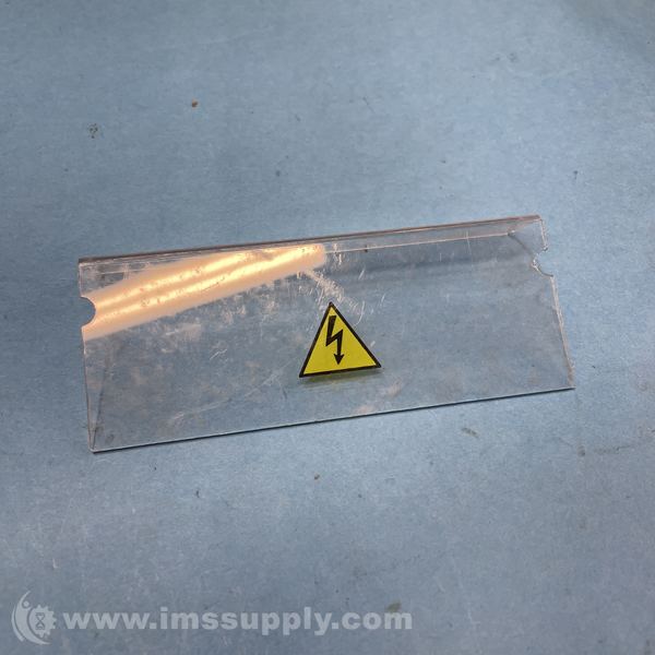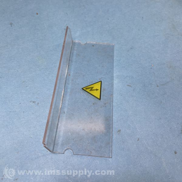 Transparent plastic shield with high voltage warning label, likely used to protect against electrical shock in industrial equipment