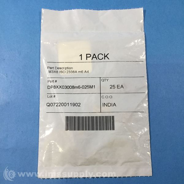 DP8XX03008M6-025M1 BAG OF 25 DOWEL PINS, M3X8, 316 SS