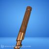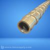 A brass tube or pipe fitting with threaded connections and multiple sections of varying diameters.