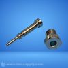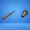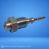 Industrial fuel injector or nozzle assembly with threaded connection and stepped internal geometry