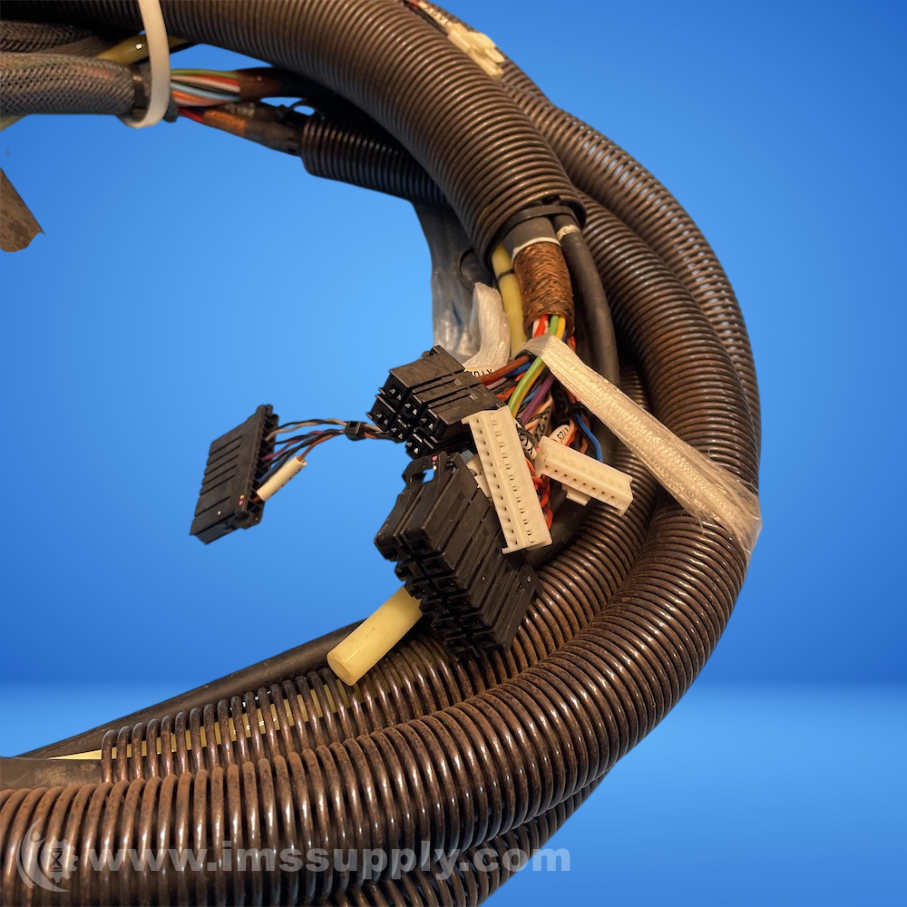 Industrial wiring harness assembly with multiple connectors and cable routing