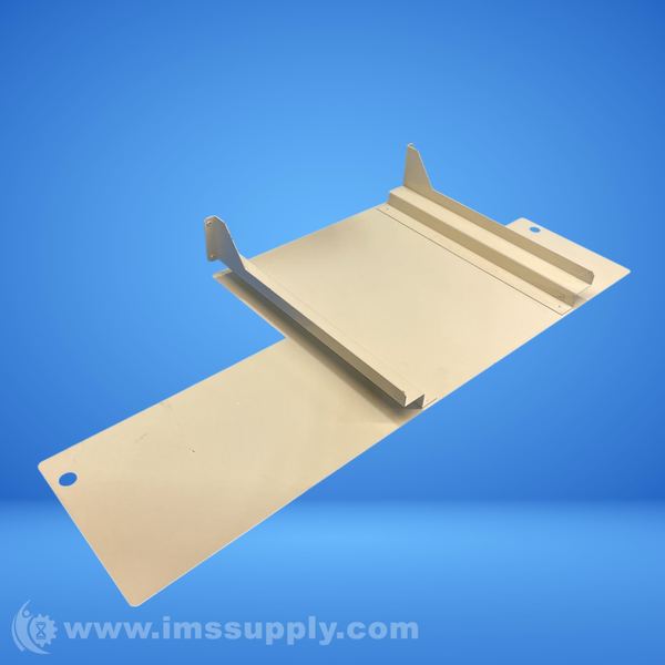 Industrial shelf bracket designed for slide-out functionality, featuring a flat base with mounting holes and a raised platform with guiding rails