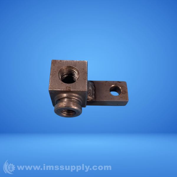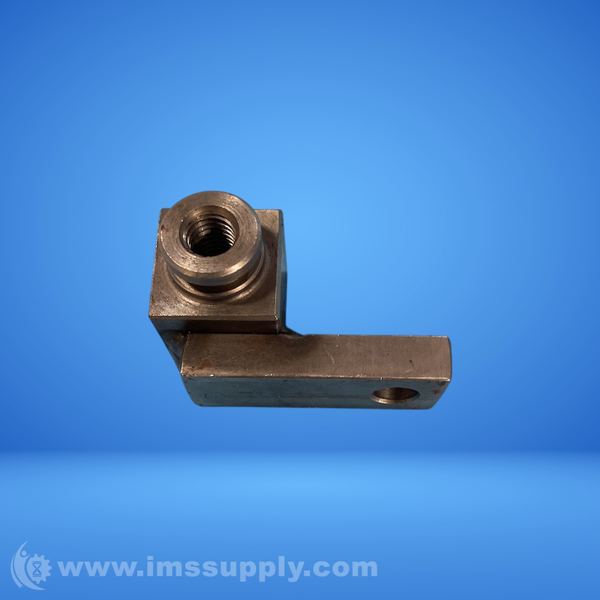 A metal fitting with threaded ports and a mounting bracket, likely used for hydraulic or pneumatic applications.