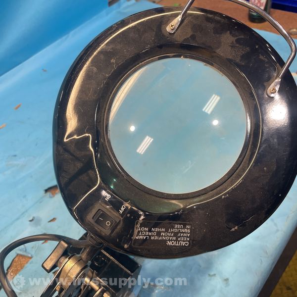 Industrial magnifying glass with adjustable arm and illumination