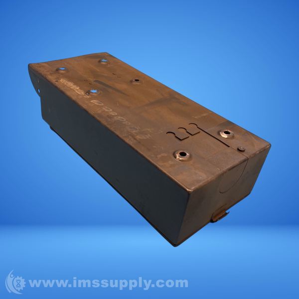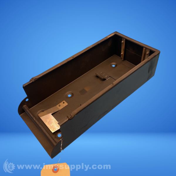 Rectangular metal box with internal mechanisms and external mounting features