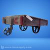 Manually operated industrial truck with flat platform and handles for transporting heavy or bulky items.