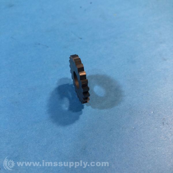 A spur gear with a circular hole in the center, featuring evenly spaced teeth around its circumference.