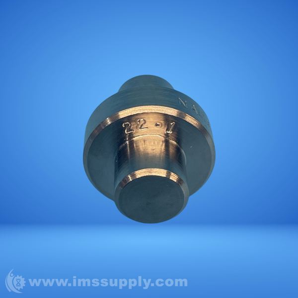 Industrial fitting with engraved part number NAMAM00107, featuring a cylindrical design with a flanged section and a smaller cylindrical base.