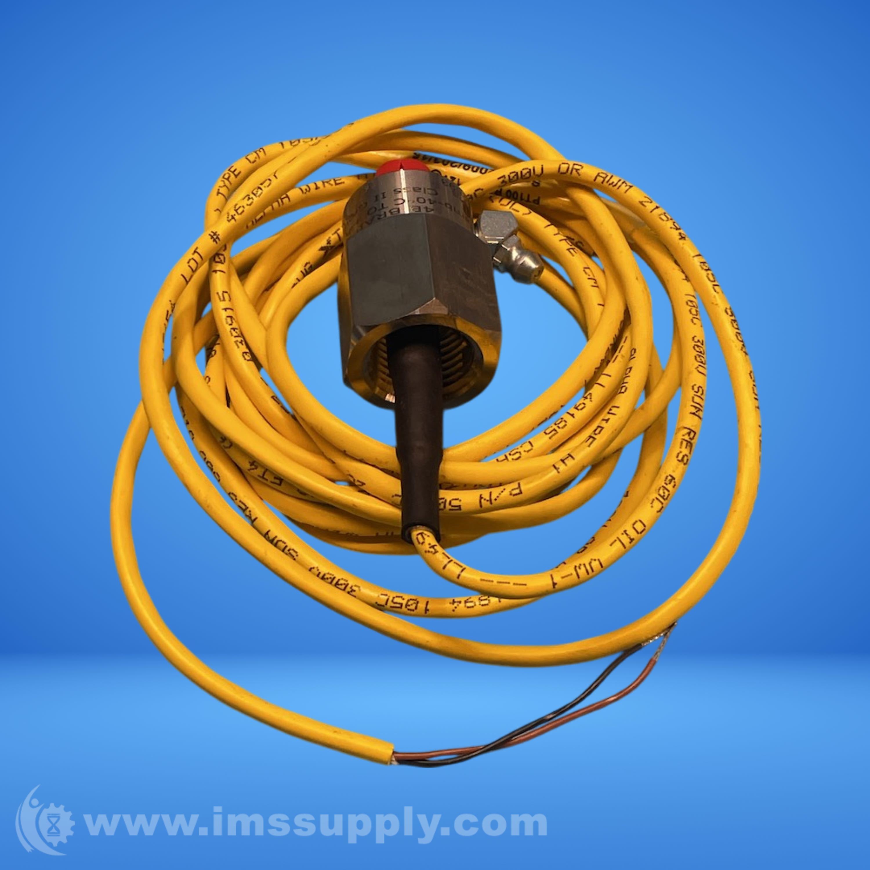 Industrial bearing temperature sensor with threaded mounting and yellow cable