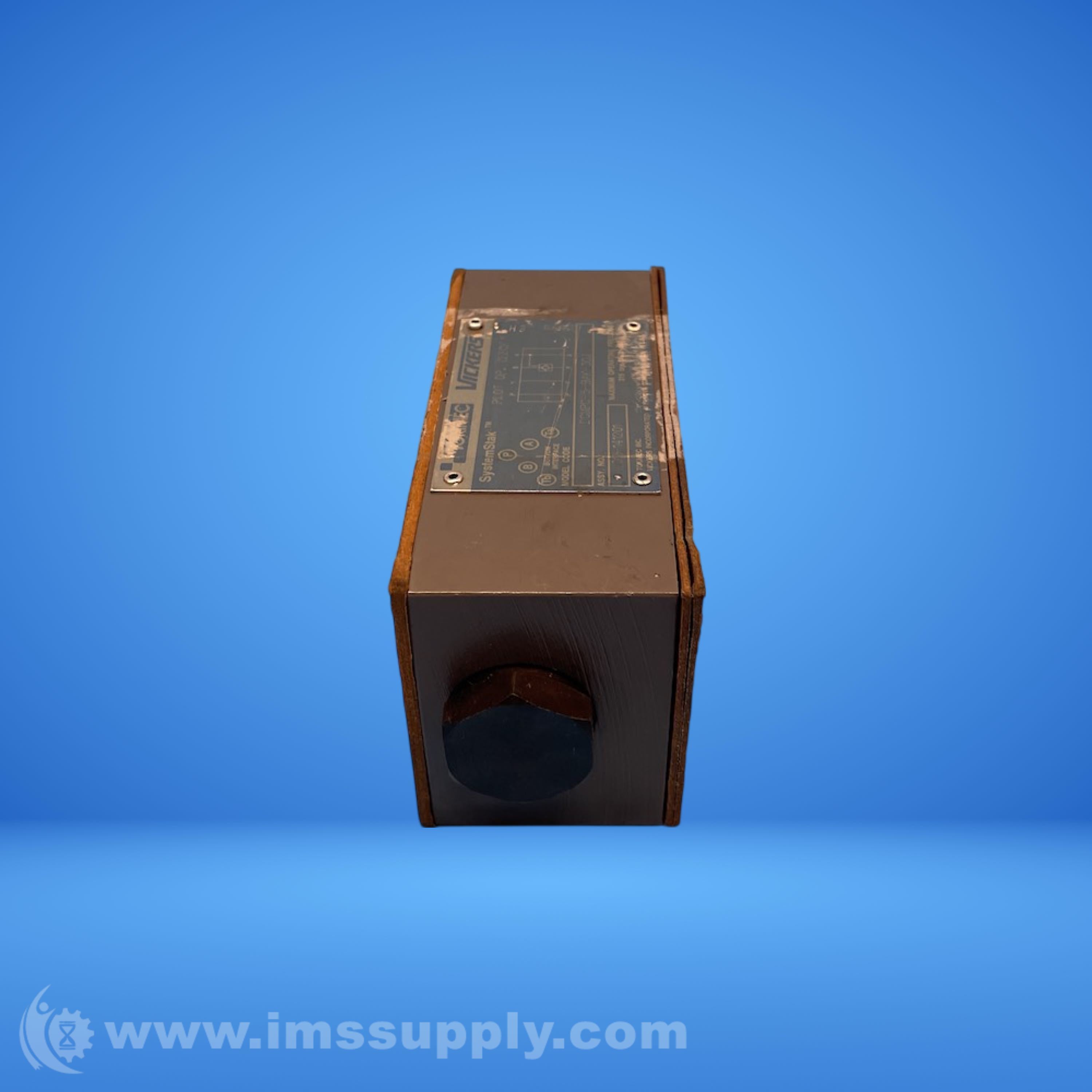Reversible hydraulic check valve manufactured by Vickers, part of the DGMPC series. Operates at a maximum pressure of 4570 PSI.